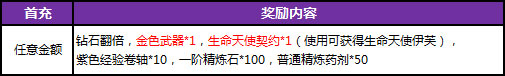 充值阶段累计充值2000元,返利阶段累计返还20000钻石,每天返还2000钻石。