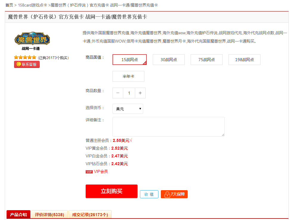 简单的几步完成之后,就可以使用paypal到专业正规的海外代充网站——“158card海外游戏交易网”购买战网一卡通了。